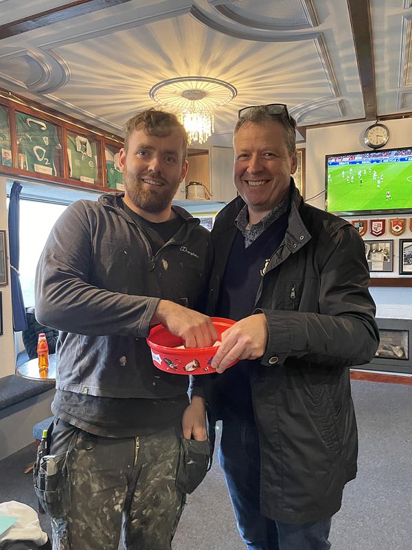 Pictured with John Ryan pulling the winning name out of the hat / box is Tom Horscraft