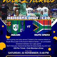 Reminder to get your tickets to win 2 tickets to Ireland V South Africa match. Were givin...