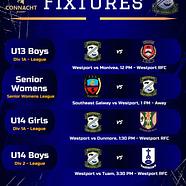 Here are your fixtures for this weekend SaturdayU14 Boys Div 2 League @ 14:00 Ballinrobe v We...